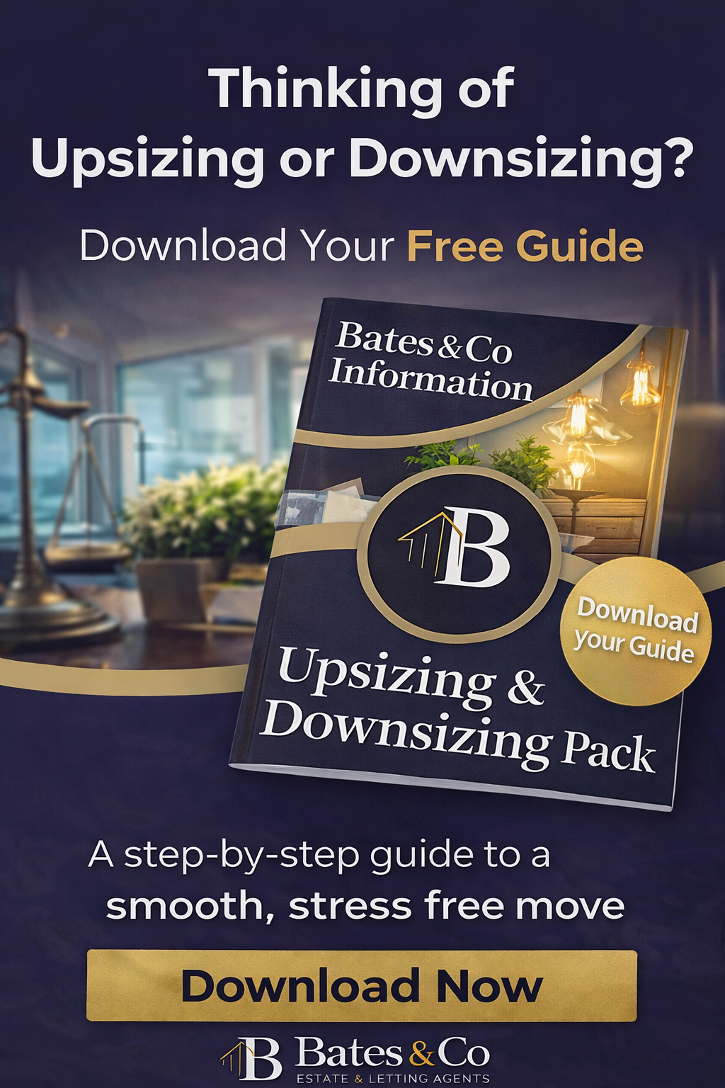 At Bates & Co Estate & Letting Agents, we specialise in helping homeowners move with clarity, confidence and a clear plan. Our downloadable Upsizing & Downsizing Information Pack explains every step in detail, from financial planning to timing your sale, and from preparing your home to finding the right onward property.